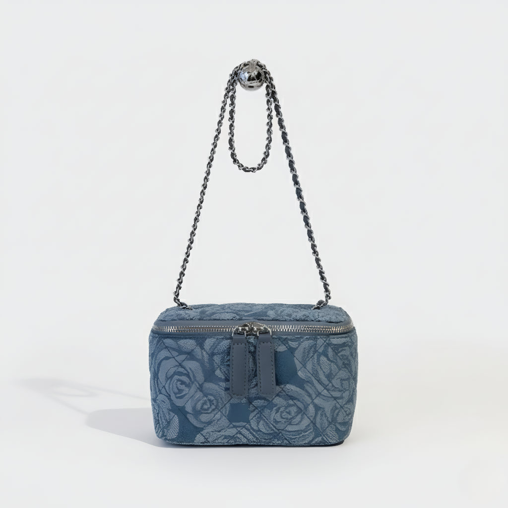 Ova torba je savršen izbor za one koji vole stil s romantičnim dodirom. S reljefnim cvjetnim uzorkom i sofisticiranim tekstilnim završetkom, donosi lagani, kreativni i ženski izgled. Njezin strukturirani oblik i ručka s lancem donose ravnotežu između ležernog i elegantnog, čineći je jedinstvenim komadom koji ističe vašu osobnost u svakoj prilici.